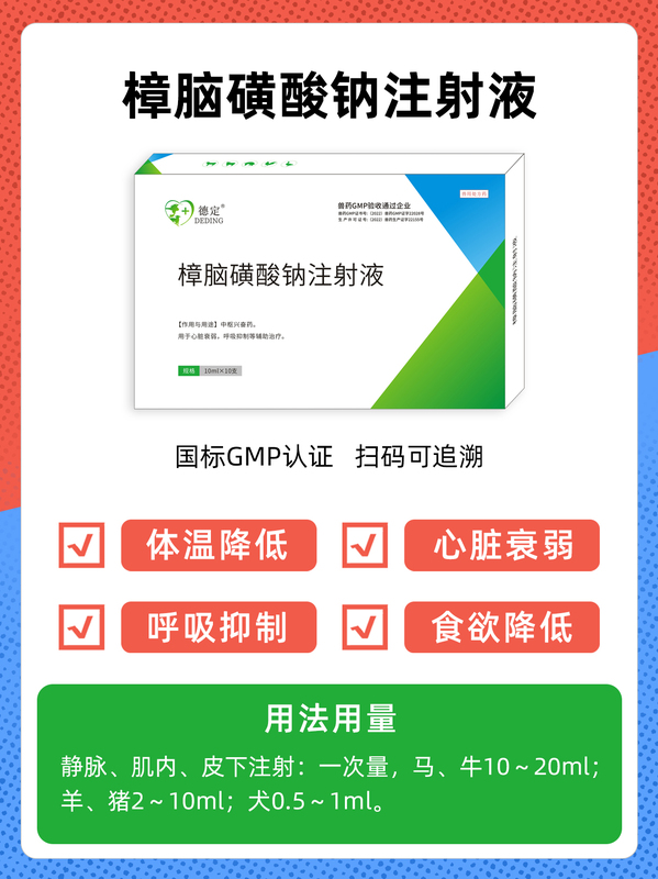 【药理作用】樟脑磺酸钠属于中枢兴奋药。本品注射后通过对局部的刺激可反射性地兴奋呼吸中枢和血管运动中枢,吸收后能直接兴奋延髓呼吸中枢。大剂量也可兴奋大脑皮层。有一定的强心作用,使心肌收缩力增强、输出量增加、血压升高等。
