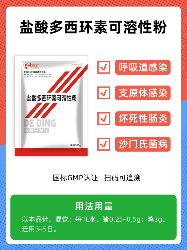 【兽药名称】通用名称:盐酸多西环素可溶性粉